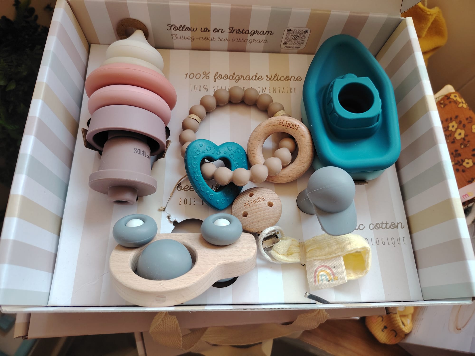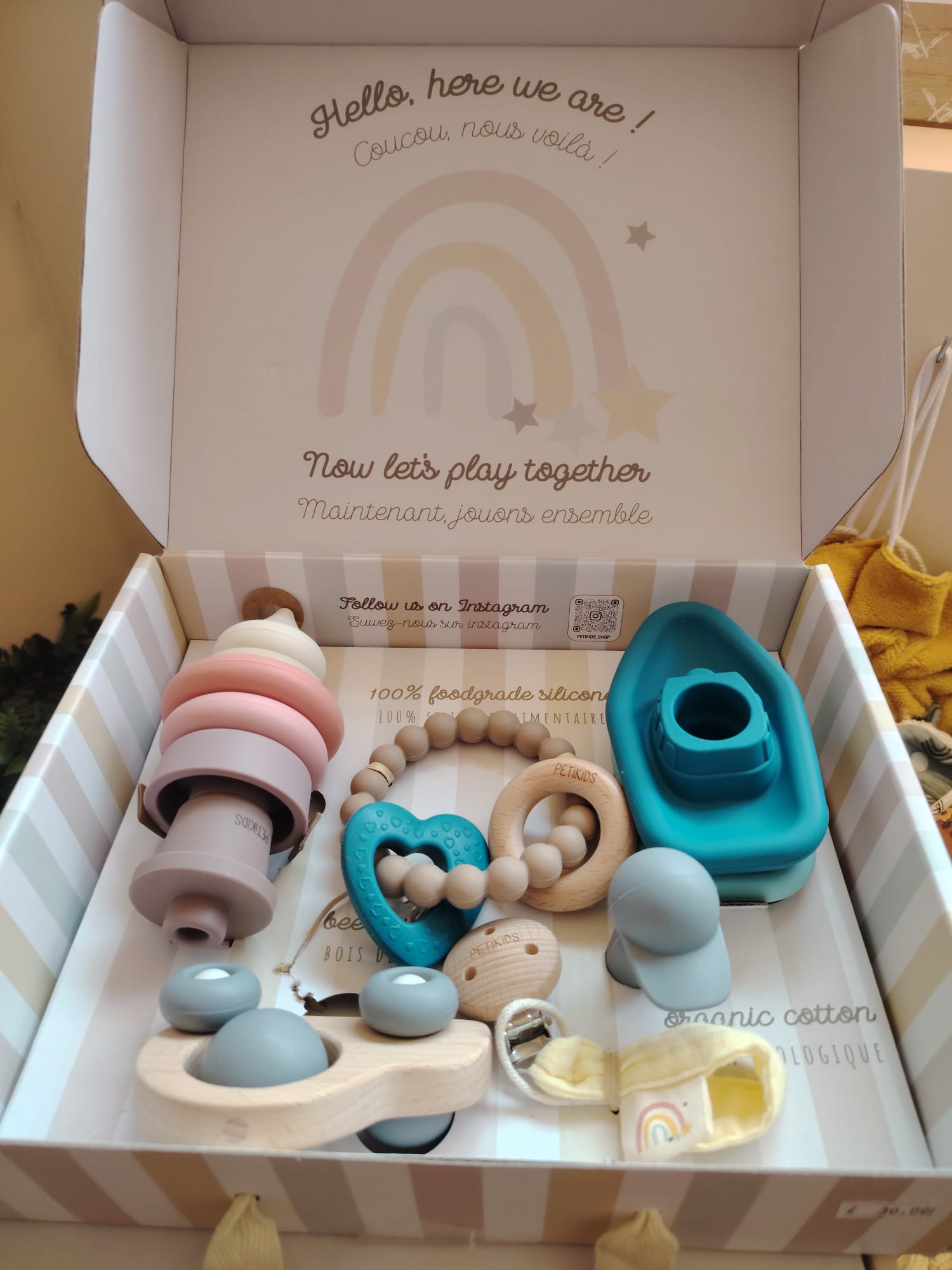 🎁 Le coffret d’éveil Petikids est un cadeau de naissance parfait pour offrir à bébé des moments de jeu, de plaisir et de complicité.